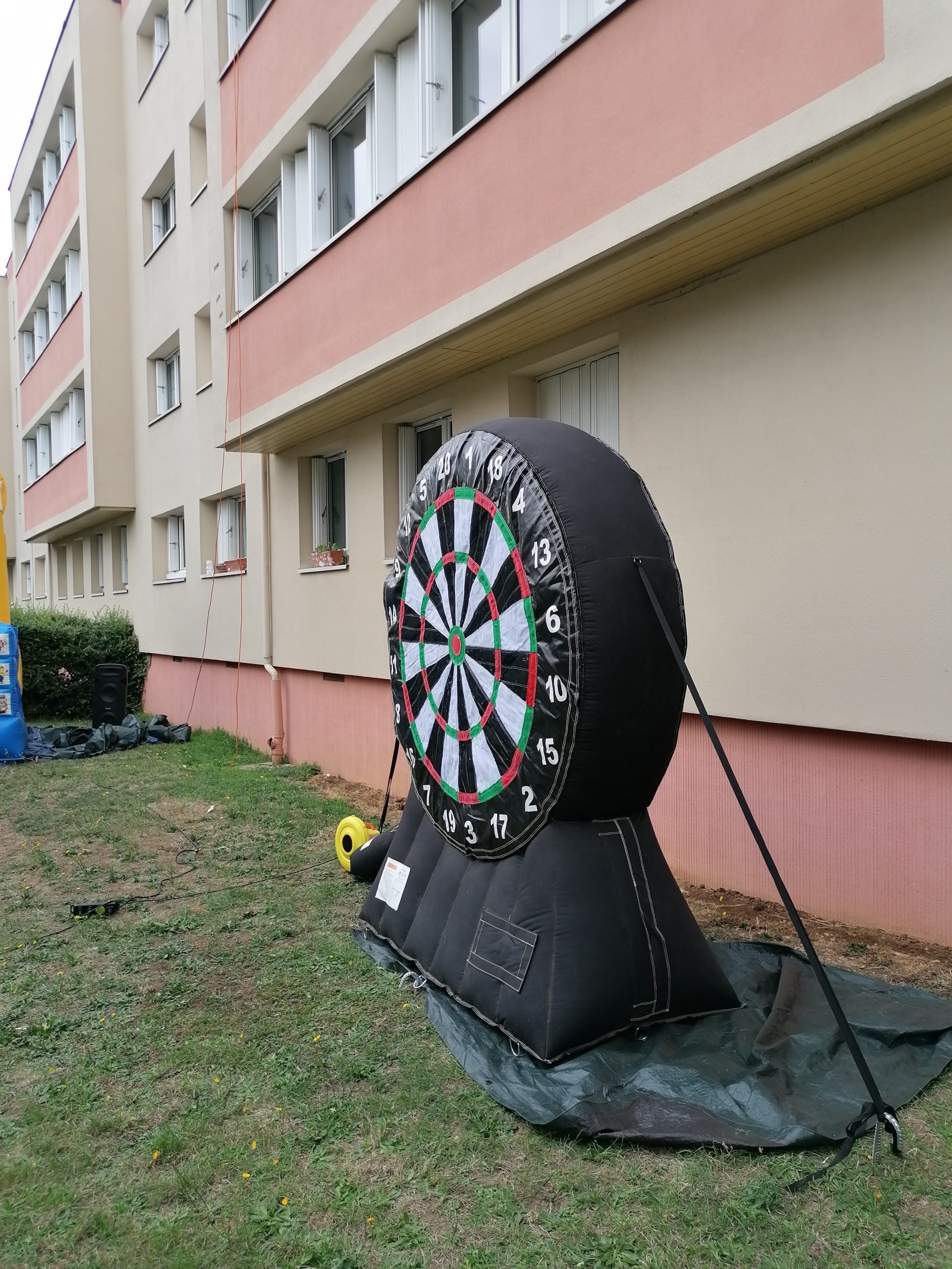 Sa taille intermédiaire (2,5 mètres de diamètre) en fait un jeu idéal pour les enfants, mais aussi pour les adultes qui souhaitent s’amuser en toute simplicité. Facile à transporter, rapide à installer : c’est l’animation parfaite pour un anniversaire, une kermesse, ou un family day.