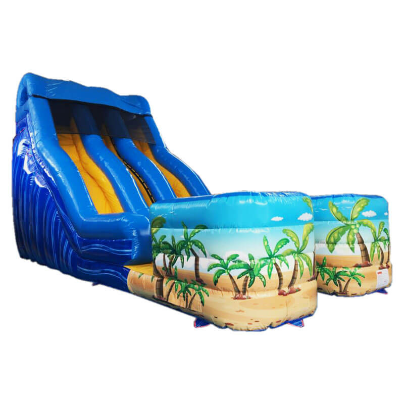 Avec ses couleurs vives et son design inspiré des plages tropicales, cette structure gonflable aquatique fera sensation sur tous les événements.